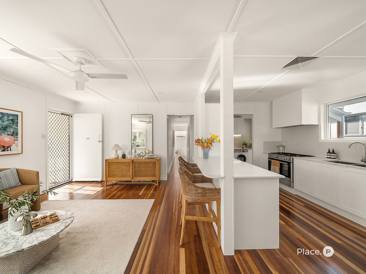 Step inside and you’ll discover a thoughtfully updated single-level layout, freshly painted and renovated throughout with nothing left to do but move in and enjoy. Polished timber floorboards flow seamlessly underfoot, adding warmth and character while complementing the home’s modern finishes. The heart of the home is the stunning brand-new kitchen, complete with quality Bosch appliances, stone benchtops and splashback, and a breakfast bar that invites casual mornings and evening catch-ups. Flowing effortlessly into the light-filled living spaces including a newly extended area with soaring ceilings and louvred windows, the home is perfectly designed to capture natural light and cooling breezes all year round.