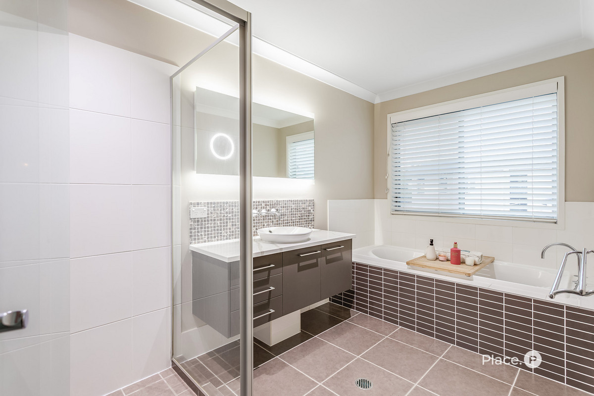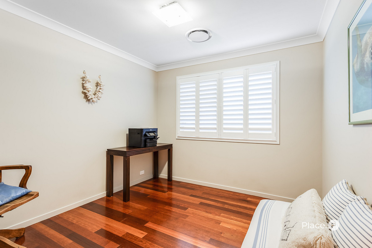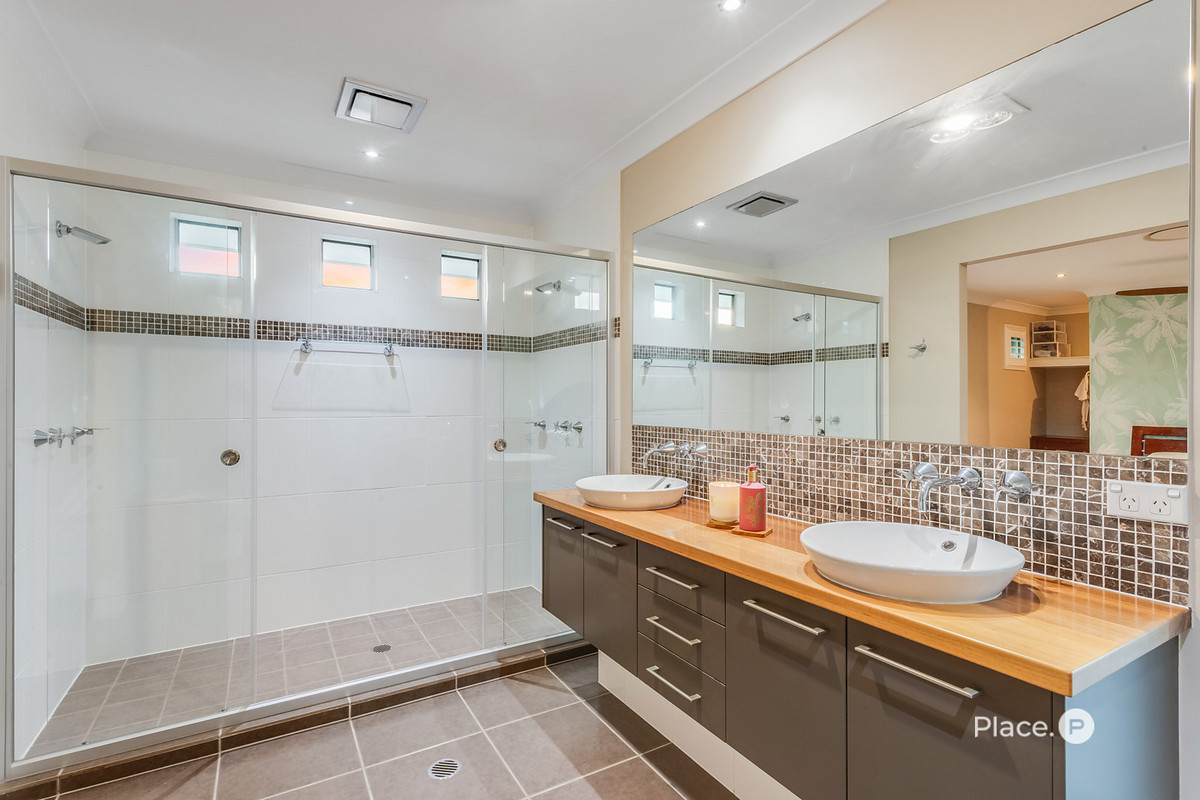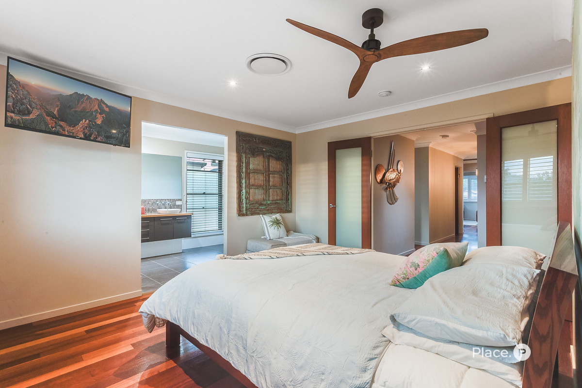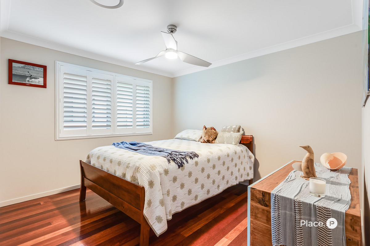 The master suite is a true retreat, complete with walk-in robe and a spacious double-basin ensuite. Plantation shutters feature throughout, while the master windows are double-glazed for added comfort and acoustic privacy.