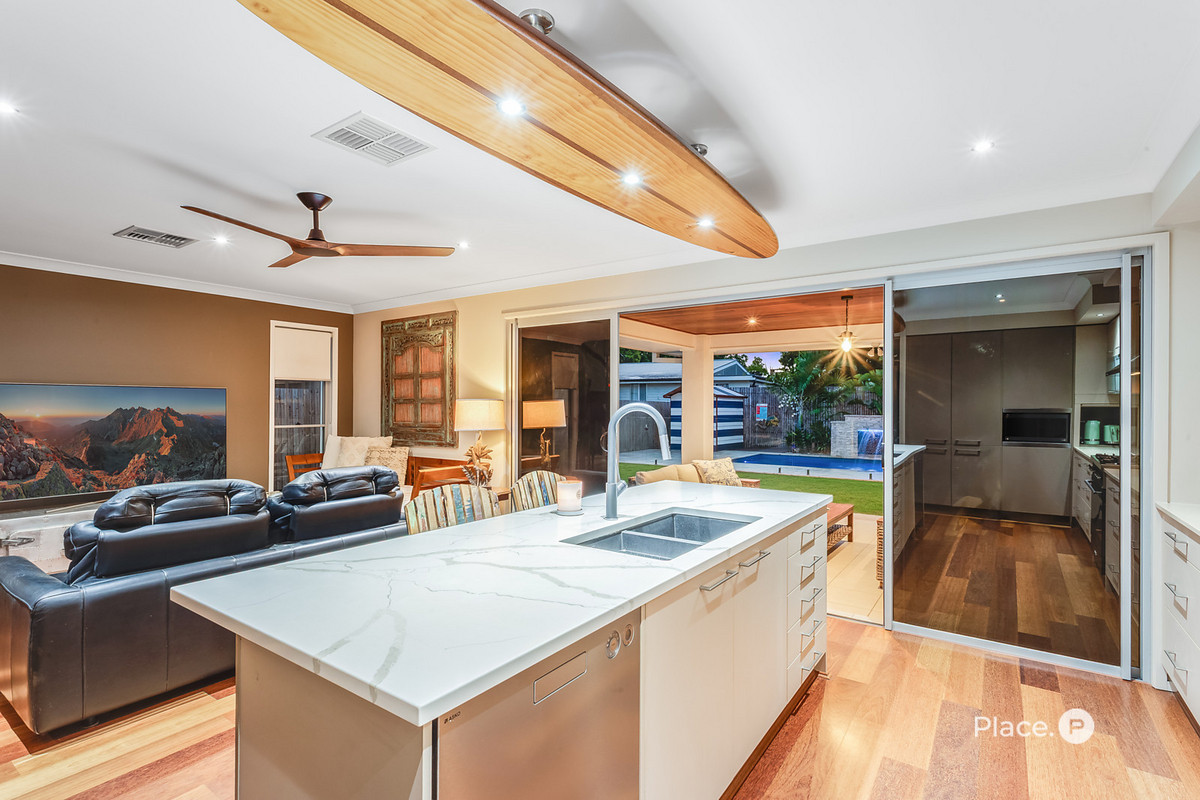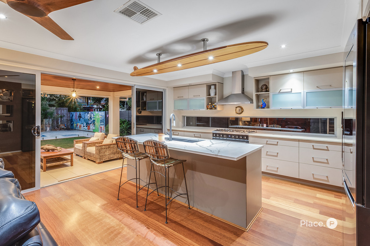 – Ducted air-conditioning and ceiling fans ensure year-round comfort, while seamless indoor-outdoor flow leads to multiple entertaining areas featuring striking timber feature ceilings.