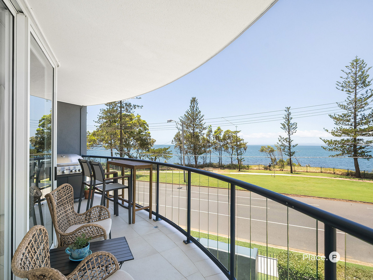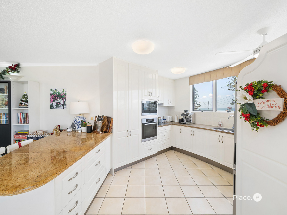 With only 14 apartments in the building, this residence offers a rare sense of privacy, space, and quiet coastal living—made even more appealing by its elevated middle-floor position and breathtaking, uninterrupted views across Moreton Bay and Moreton Island.