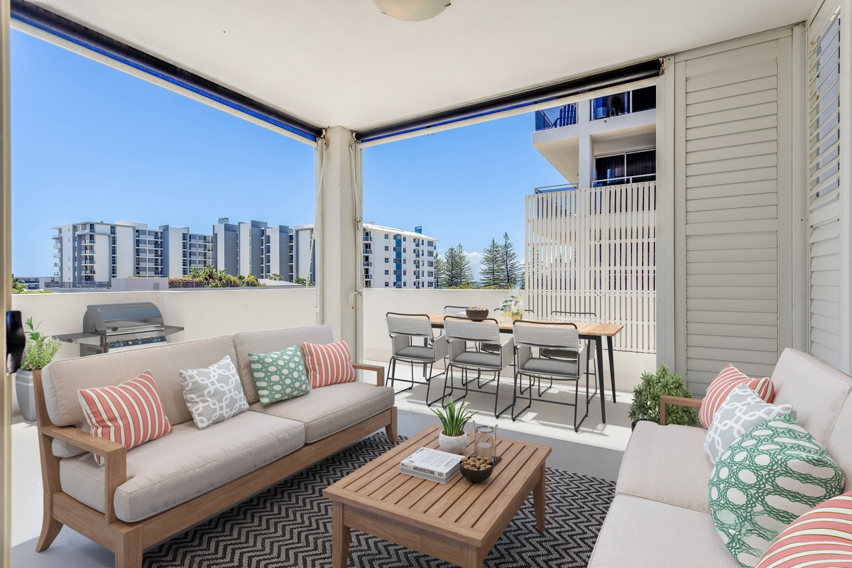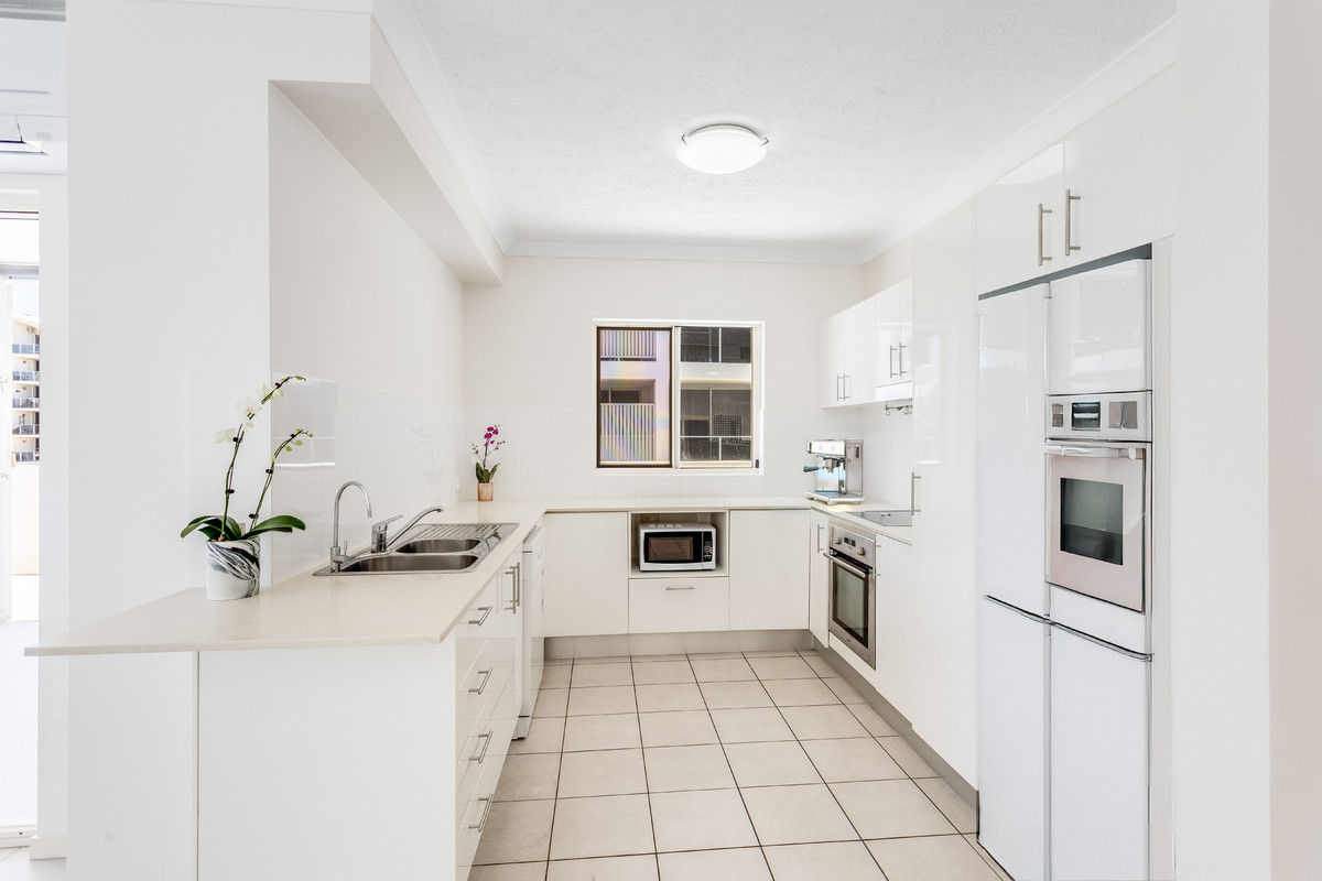 Inside, the apartment features a spacious open-plan living and dining area that flows seamlessly onto a generous wraparound balcony, perfect for enjoying the coastal outlook or entertaining friends and family. The kitchen is modern and well-appointed with stone benchtops, quality electric appliances and ample storage.
